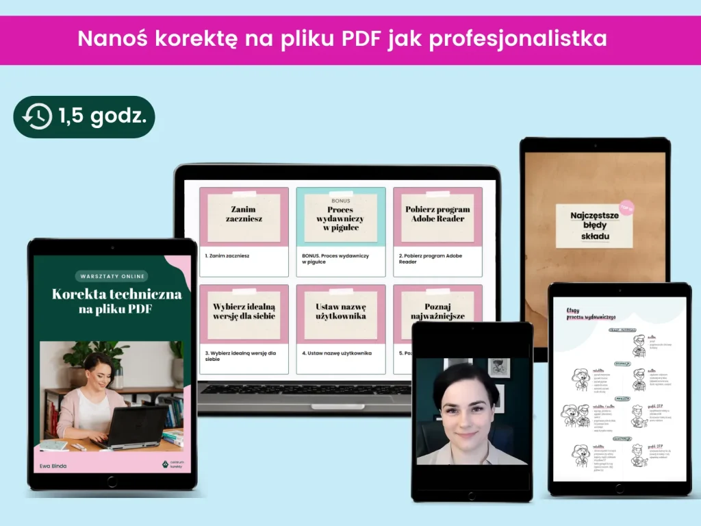 - chcesz poznać dobre praktyki stosowane w branży wydawniczej, dzięki którym Twoja korekta będzie wyglądać profesjonalnie, a grafik DTP Cię pokocha;