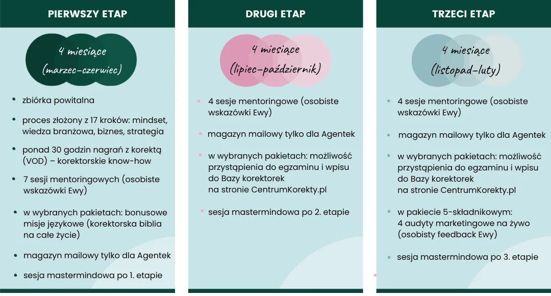 - A może masz już za sobą pierwszy kurs korekty, stos poradników i próby w pracy z tekstami. Zrobiłaś naprawdę dużo, a jednocześnie czujesz, że chcesz sięgnąć po więcej. Właśnie dlatego pragniesz dodać do tej układanki elementy biznesowe, marketingowe, brandingowe i mentalne oraz zyskać wsparcie mentorki, aby zacząć działać z większą pewnością siebie, odwagą i spokojem.